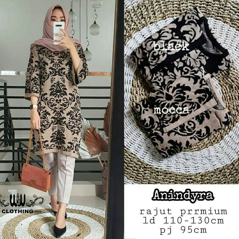 Name: Anindyra Tunik Mocca Black Long Tunic Cewe Rajut Jumbo Big Size Wanita Motif Batik Panjang Murah New